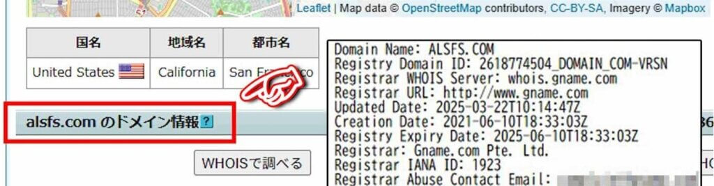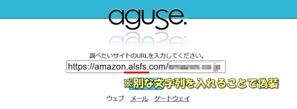 正規のドメインに別な文字列(alsfs)をいれてくるパターンになります。