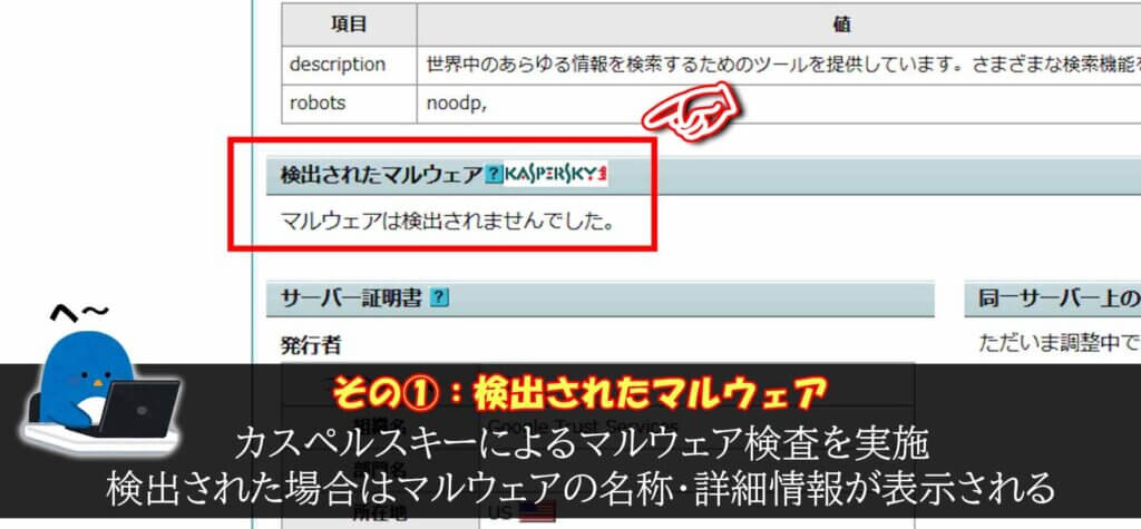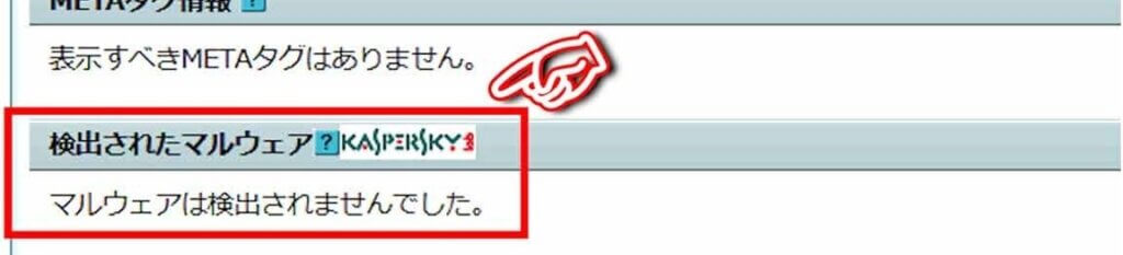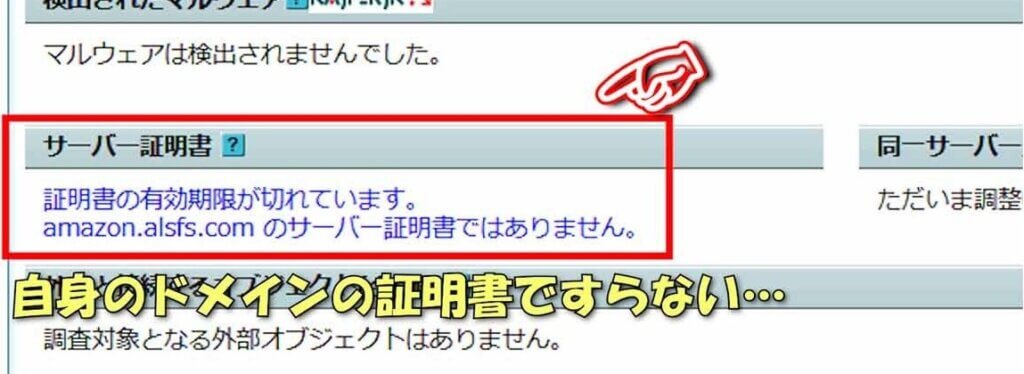 このURLは”問題です” or ”問題ありません”という判定を明示的にしてくれる訳ではないので、表示された調査結果を元に自身で判断していきます。