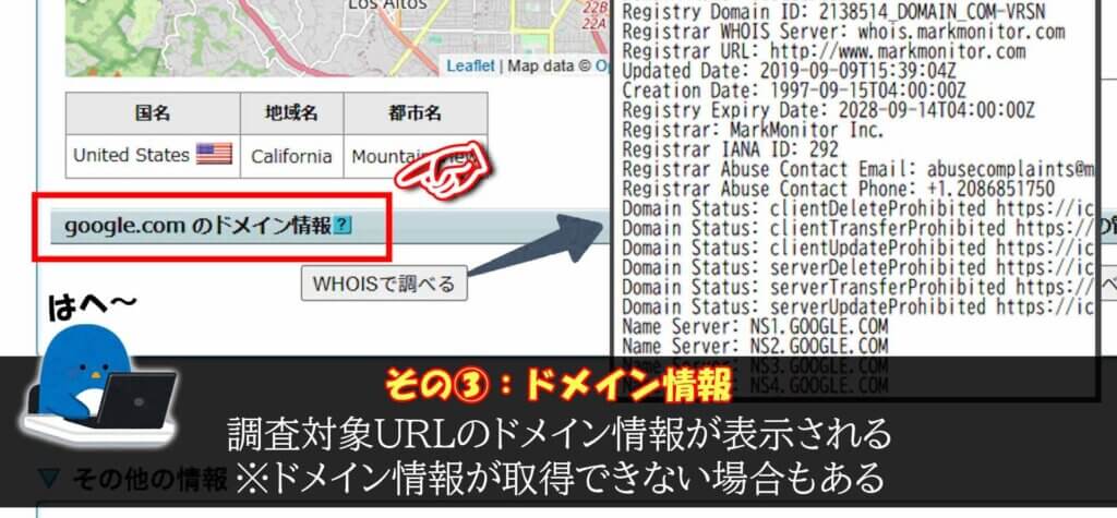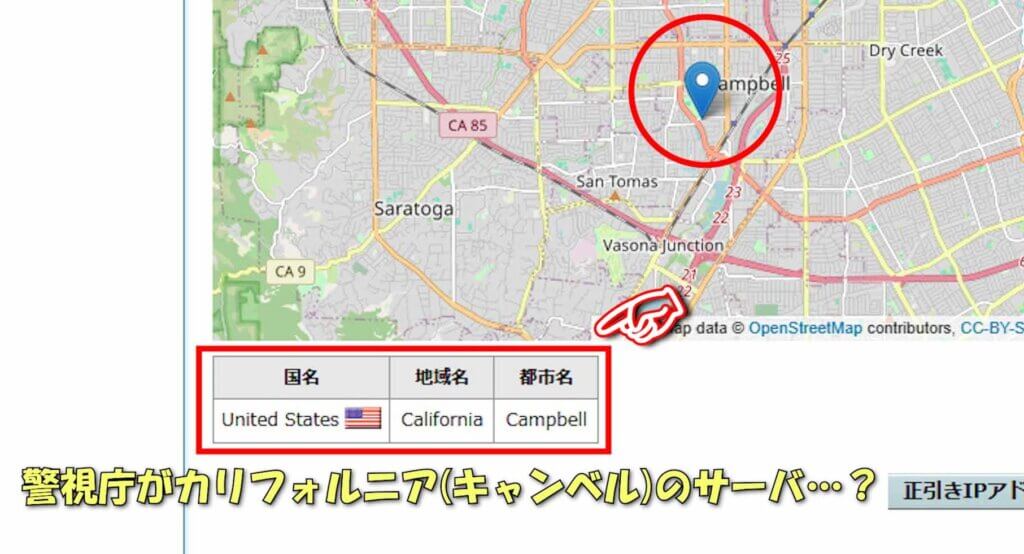 サーバの位置情報はカリフォルニアとなっており、警視庁が海外拠点のサーバーを使うということは無いですね。