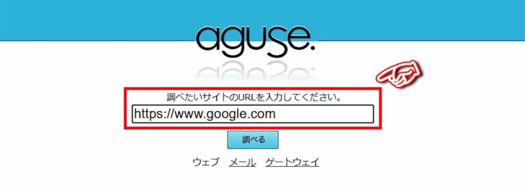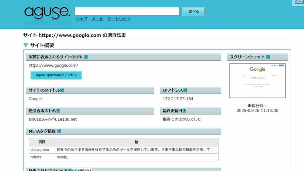「agus」という調査用のサイトがあるので、そちらで試してみます。