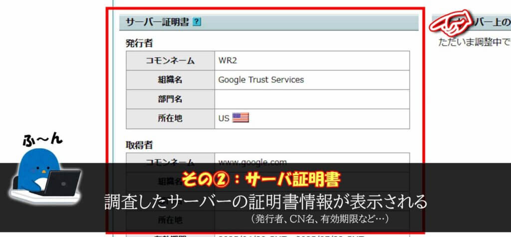 Googleのように、運営がしっかりしているサイトは「サーバー証明書」というものを使用しています。