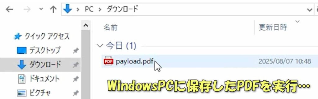 作成したPDFファイルを攻撃対象のWindowsPCに配置します。