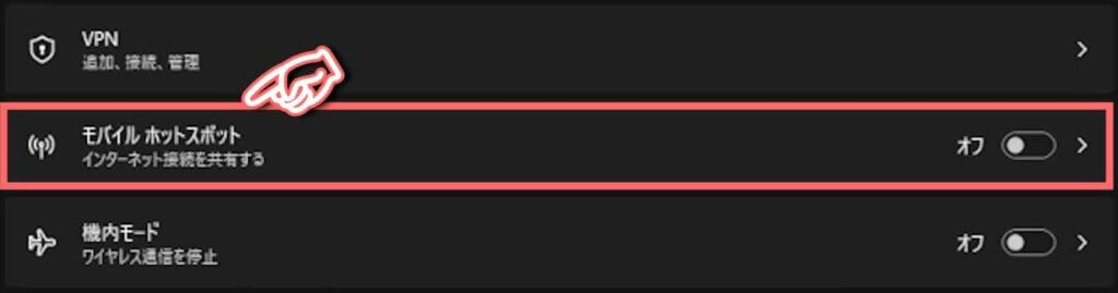 ⑤ モバイルスポットを「オン」にします。