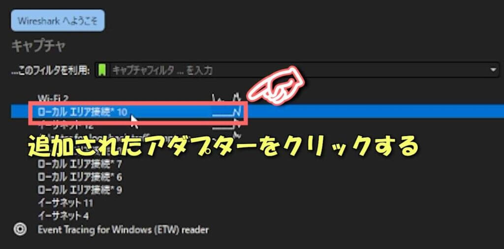 ② ホーム画面に表示されているアダプタ一覧から、先ほど確認したアダプタをダブルクリックします。