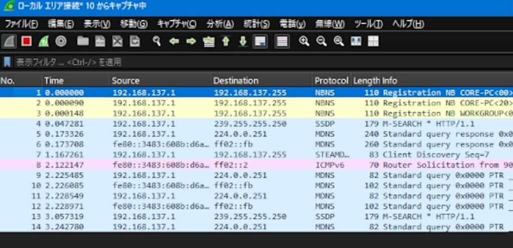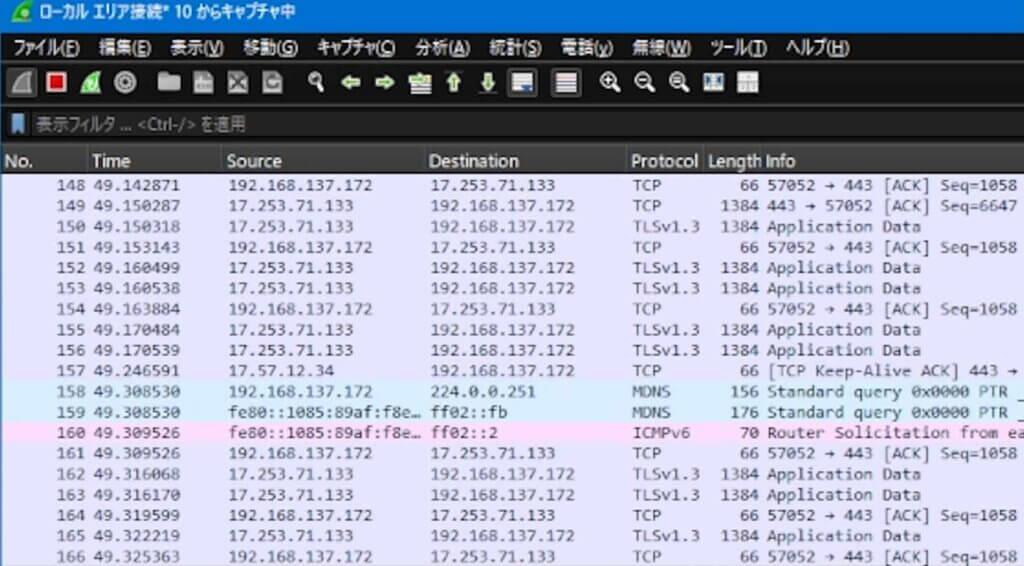 ネットワーク上を流れる通信を可視化するツール「Wireshark(ワイヤーシャーク)」をパソコンにインストールします。