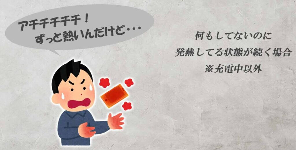 充電中は熱くなったりする時もあると思いますが、何もしてないのに発熱してる状態が続く場合。