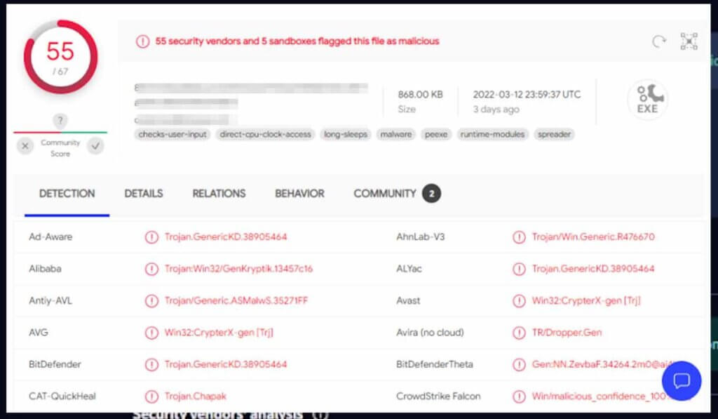 - 検出数 10〜20以上 : 赤色で警告が表示されます。ハッキングに関わる危険なサーバ(C&Cサーバなど)である可能性が高いです。