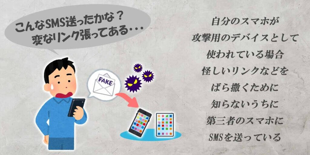 怪しいリンクをばら撒くために知らないうちに自分とは関係のないスマホにSMSを送ってしまっていたり…